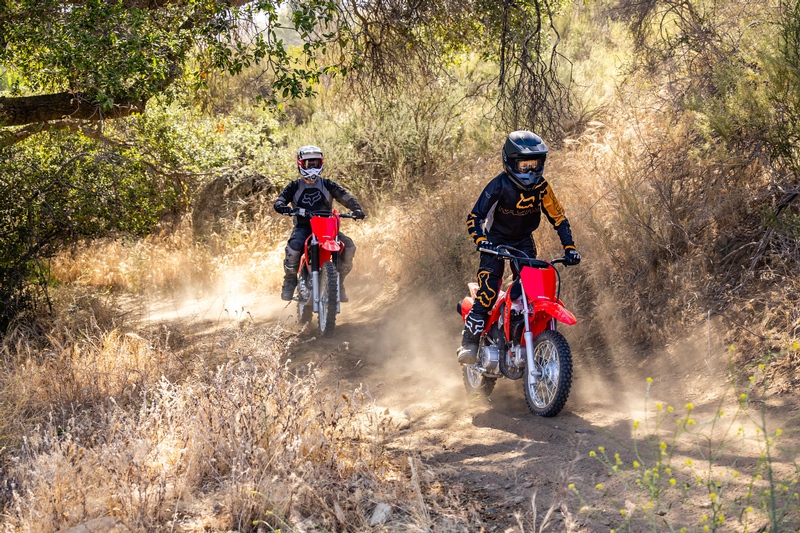 Bei der CRF110F geht es um das Fahrgefühl eines grossen Motorrads und vor allem um viel Spass. Sie richtet sich an die Altersgruppe von 8 bis 11 Jahren, besitzt ein robustes Chassis, einen elektrischen Anlasser und einen zuverlässigen Viertaktmotor. Sie ist das ideale Sprungbrett zu den wettbewerbsorientierteren Honda MX- und Enduro-Maschinen mit 125/150 ccm Hubraum. Hondas robuste CRF110F ermöglicht jungen Fahrern eine zuverlässige Fahrt und öffnet die Tür zu einem Fahrspass, der ein Leben lang anhält. Sie besitzt einen elektrischen Anlasser, einen robusten Stahlrahmen und eine hochwertige Aufhängung, mit der sich die Maschine in Sachen Handhabung und Leistung wie ein grosses Motorrad anfühlt. So fahren junge Draufgänger den ganzen Tag – mit einem breiten Grinsen im Gesicht.